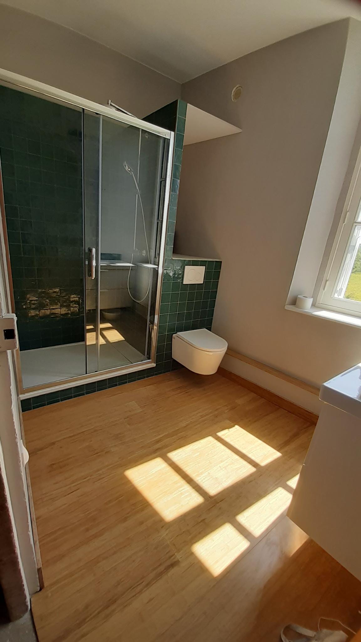 Suis très contente de la rénovation de ma salle de bain par Félix Foucher. Les poses du parquet et du carrelage sont particulièrement soignées. Merci