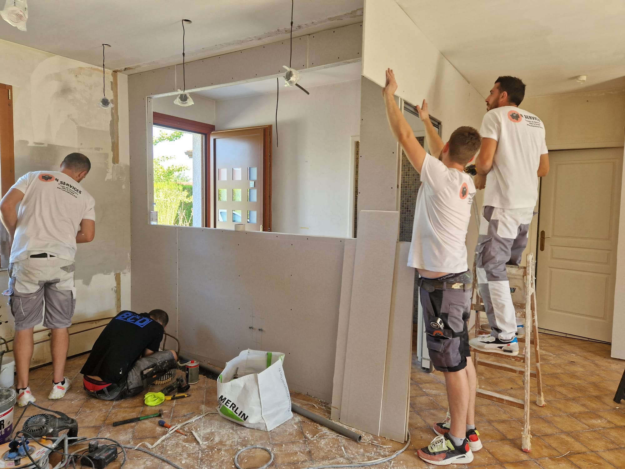 Nous avons choisi l'entreprise N services . Mr AVDIU nous a fait bonne impression dès le premier contact. Nous avons fait une rénovation d'un salon salle à manger, couloir d'entrée, WC et cuisine . Abattement d'un mur pour en recréer un, afin d'agrandir la cuisine. Le travail a été réalisé dans les temps impartis et nous sommes contents de la prestation des équipes . Le travail a été bien exécuté et même si il y a eu quelques petits soucis de finition, Mr AVDIU a été réactif auprès de son équipe pour remédier au problème. L'équipe était fort sympathique et à l'écoute de nos demandes. On peux aussi mettre en avant la disponibilité de Mr AVDIU qui a répondu à toutes nos demandes . On ne peux que recommander cette entreprise qui travaille efficacement et les devis sont correctes et respectés. J.Bezol
